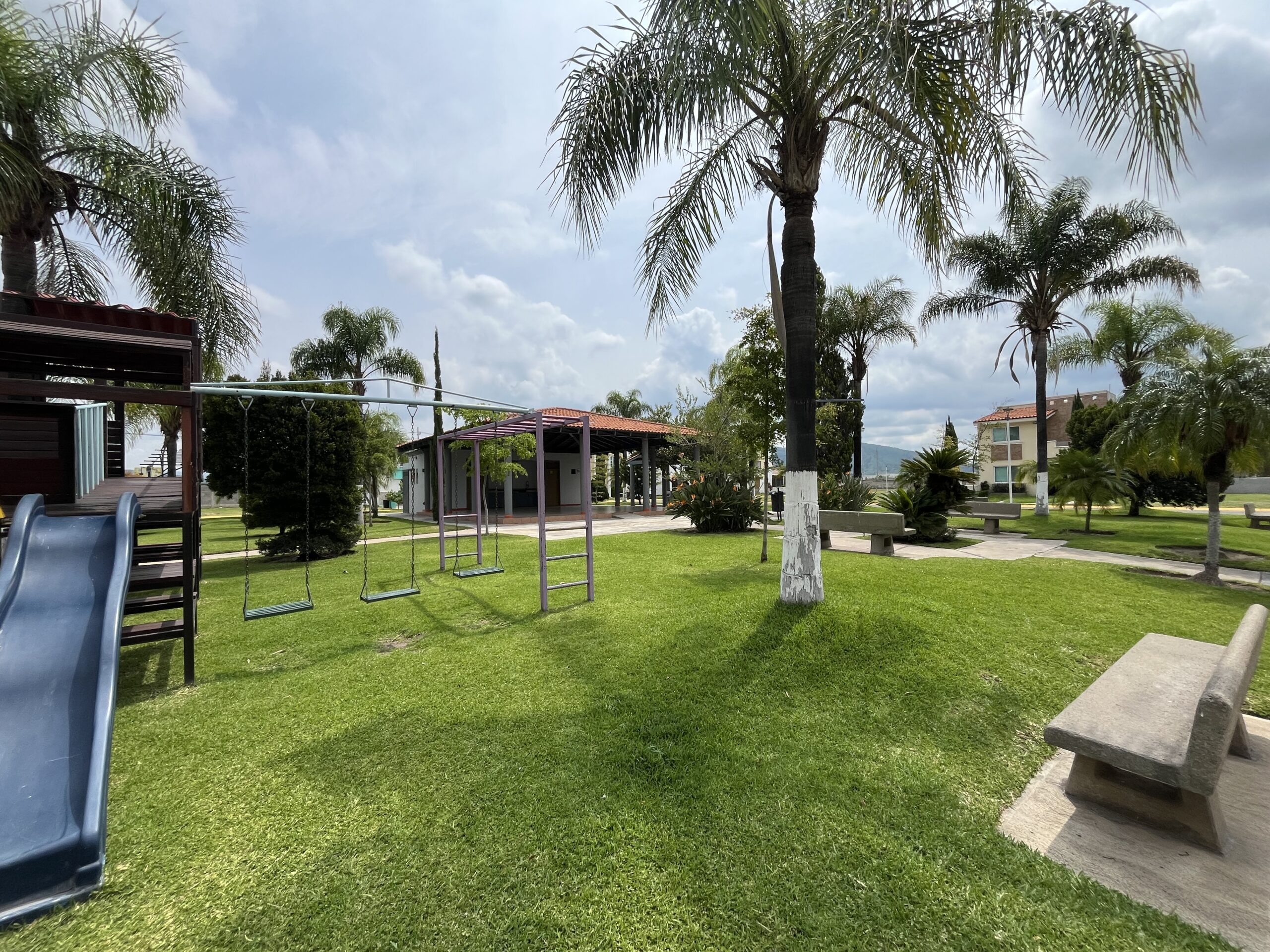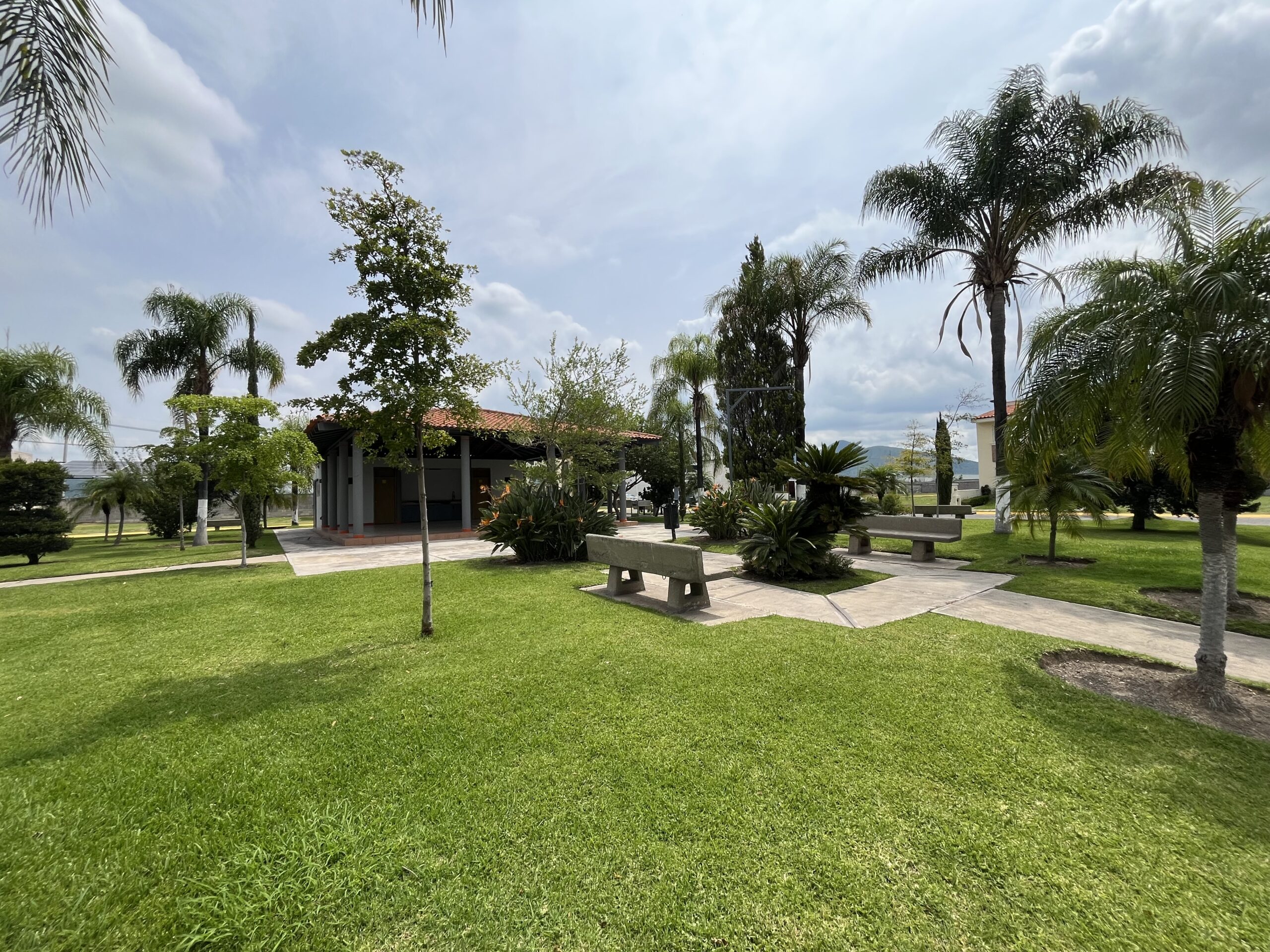 Terraza para eventos y áreas verdes.